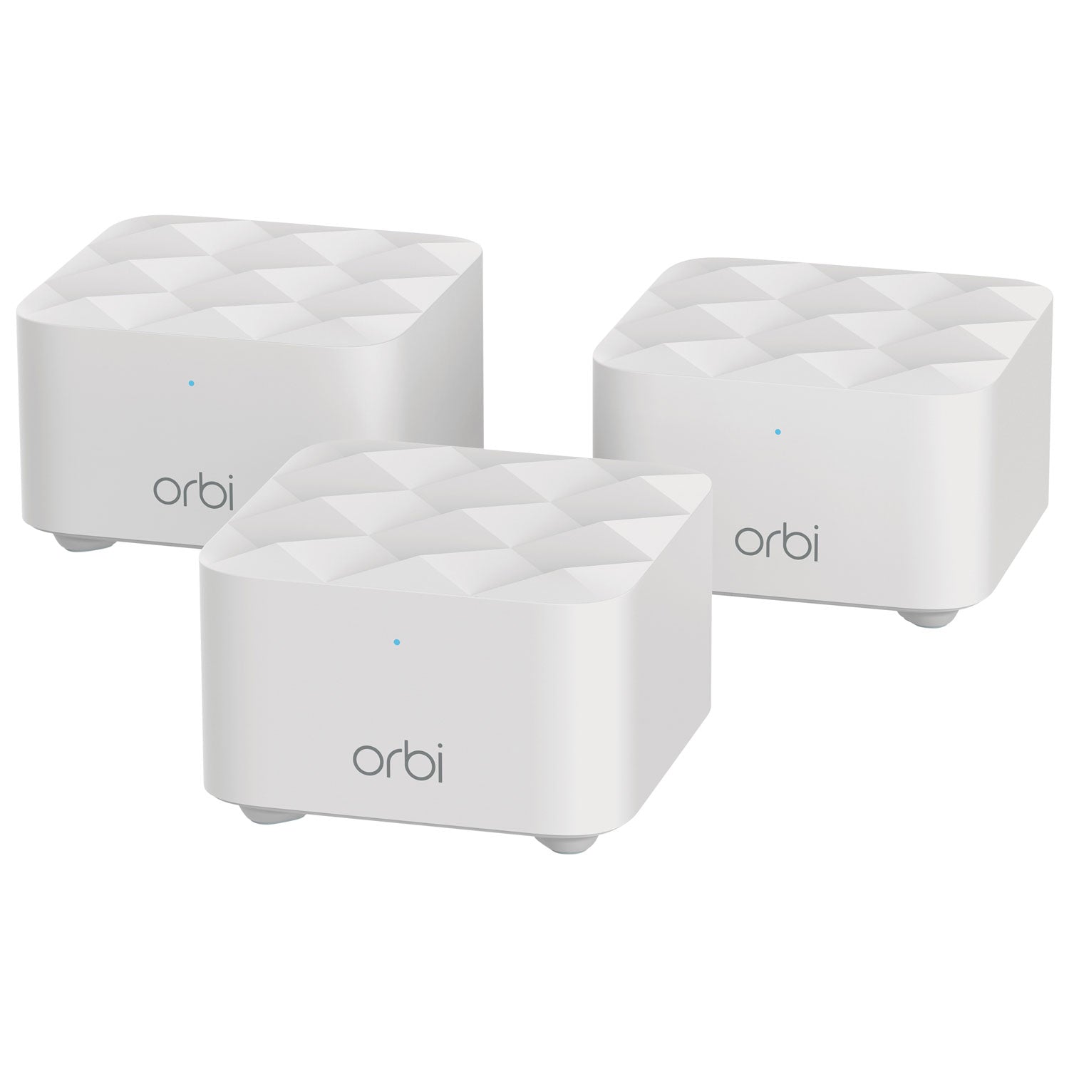 - Mounting Hardware: One (1) Orbi Router (RBR10), Two (2) Orbi Satellites (RBS10), One (1) 2m Ethernet cable, Three (3) 12V/1A power adapters, Quick start guide